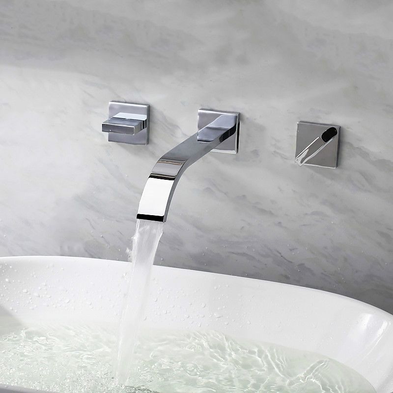2020 Waterfall Bathroom Faucet Wall Mounted Double Handles Brass Material Chrome Plated Basin Mixer Faucet High Quality In Wall Tap From Chaowalmai2 80 2 Dhgate Com