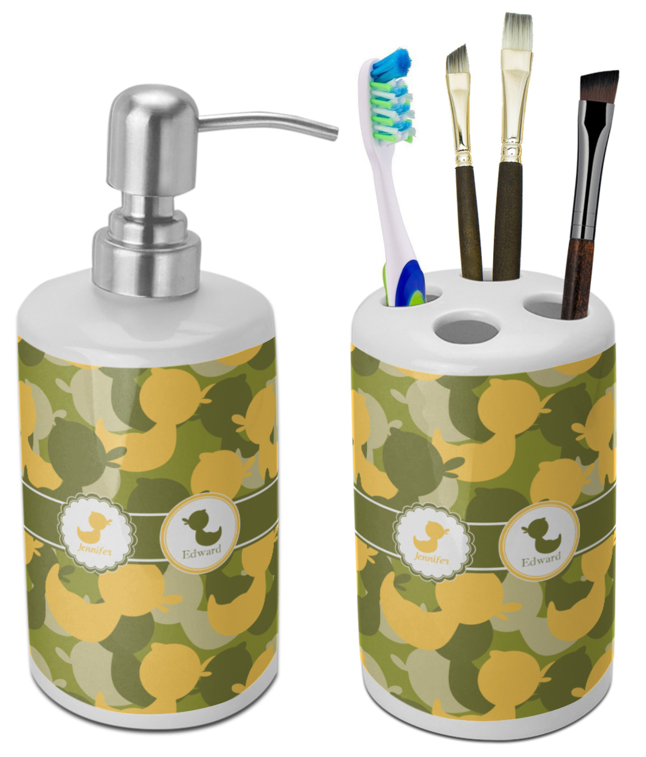 Rubber Duckie Camo Bathroom Accessories Set Ceramic