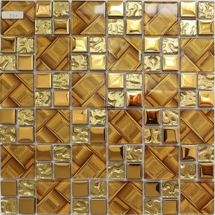 Js Hp02 Premium Gold Color Mosaic Glass Wall Tile Luxurious