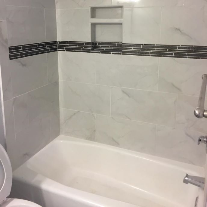 12x24 Wall Tile Grid Pattern In Walk In Shower Niche Bathroom