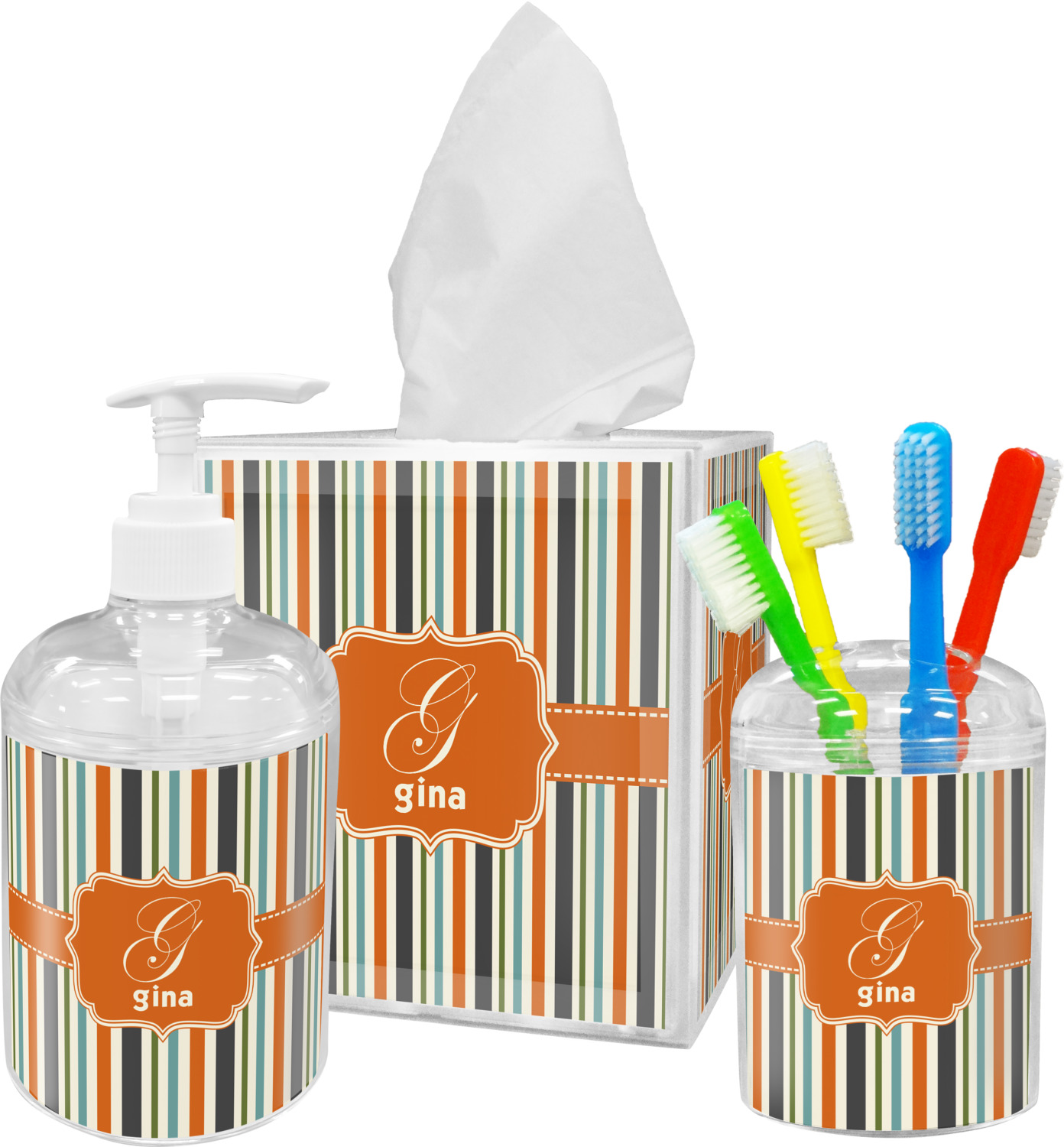 Orange Blue Stripes Bathroom Accessories Set Personalized
