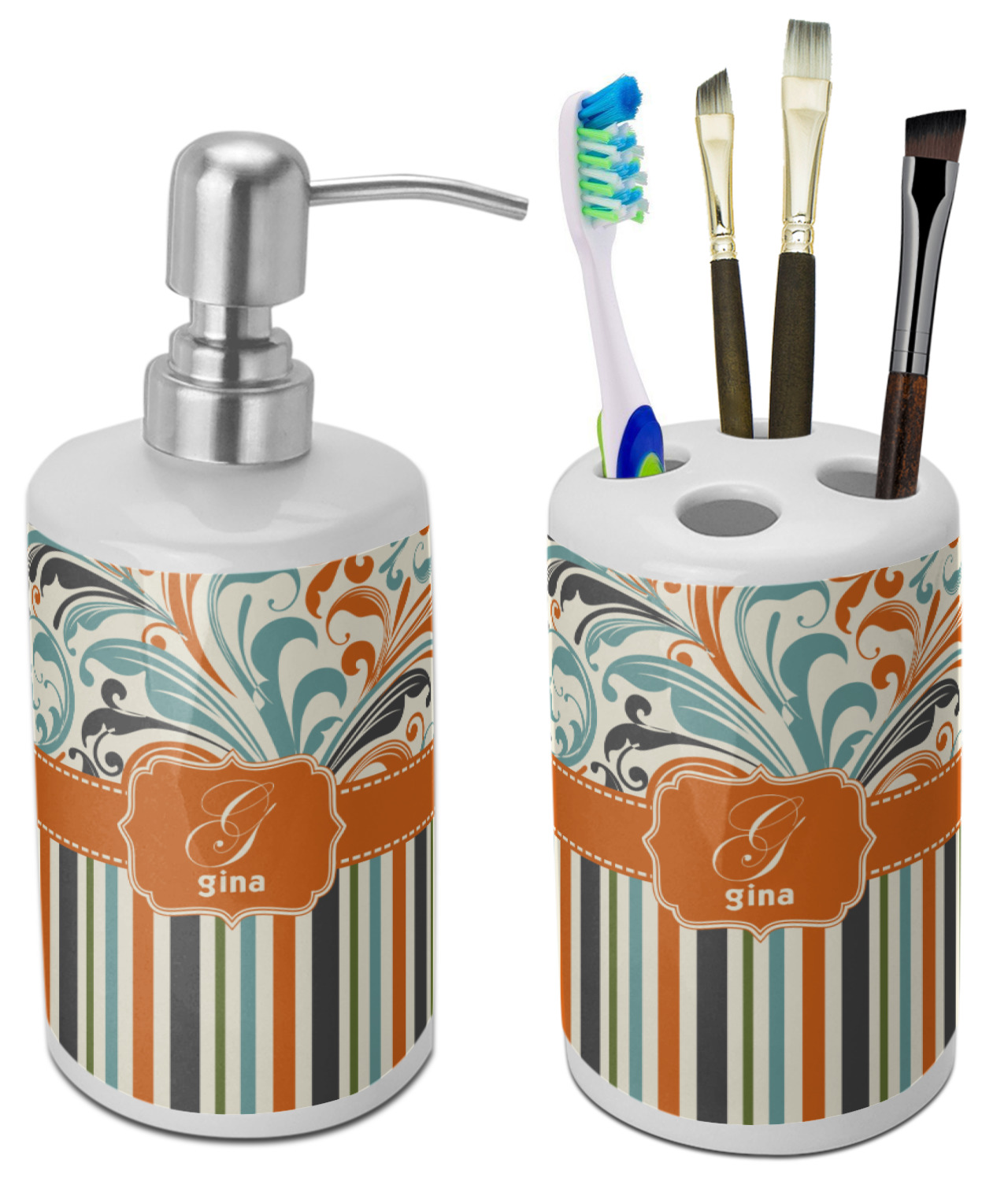 Orange Blue Swirls Stripes Bathroom Accessories Set Ceramic