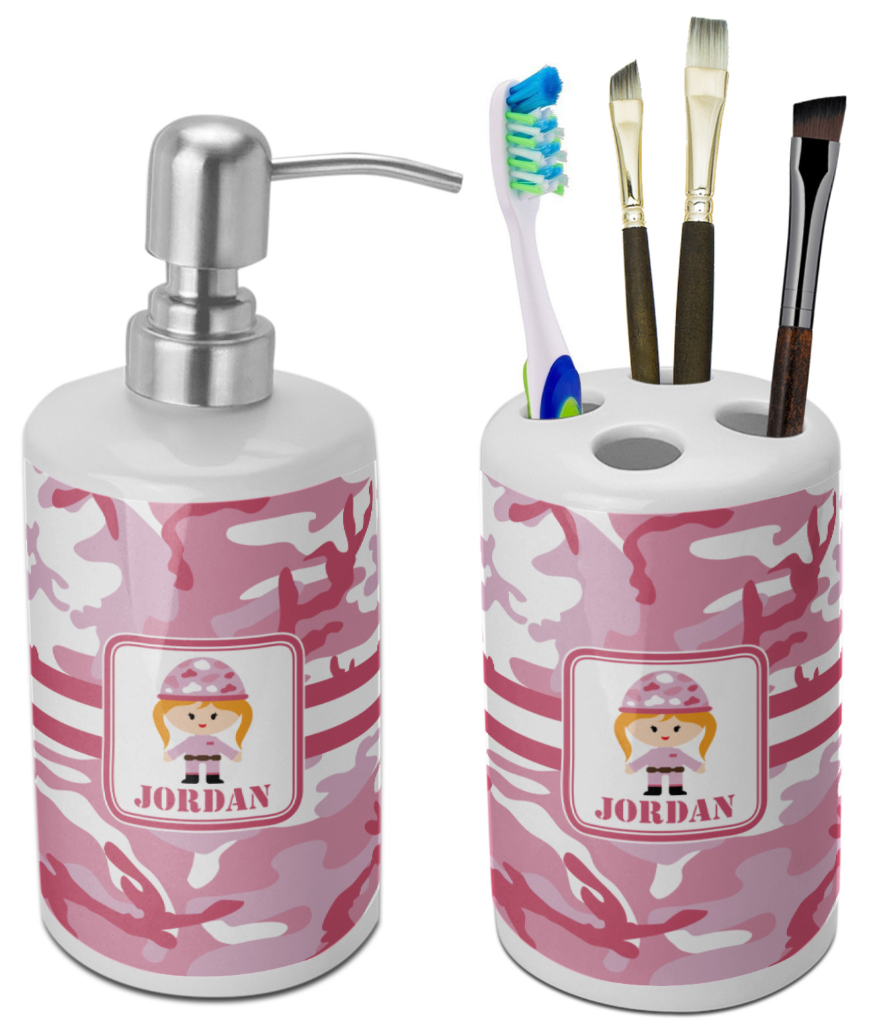 Pink Camo Bathroom Accessories Set Ceramic Personalized